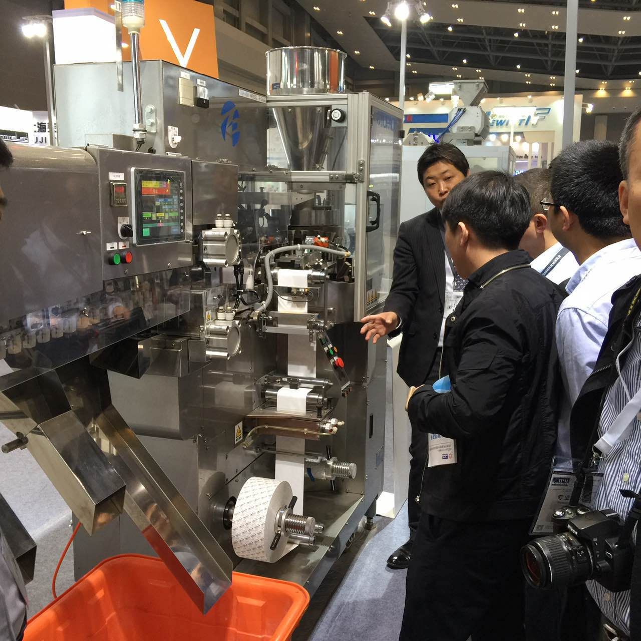 這是我們公司的展臺,展品是日本TOPACK三邊封充填包裝機(jī),整體展臺的搭建是干凈、利落透著舒適,顏色也搭配簡潔明亮,吸引了不少人的眼光,來咨詢的客戶也是蠻多的。